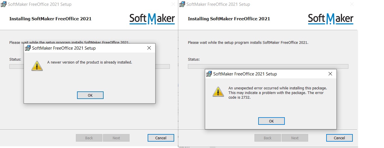 I have followed instructions from Softmaker to ensure that there is no old version, but still get the same errors - see attachment.