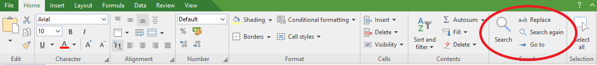 Or you can click on the ribbon command Home | Search group which is dedicated to Search and Replace, please check the attached screenshot for your reference.