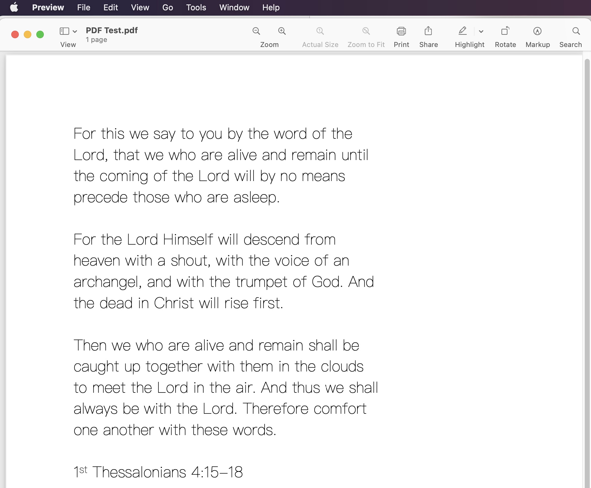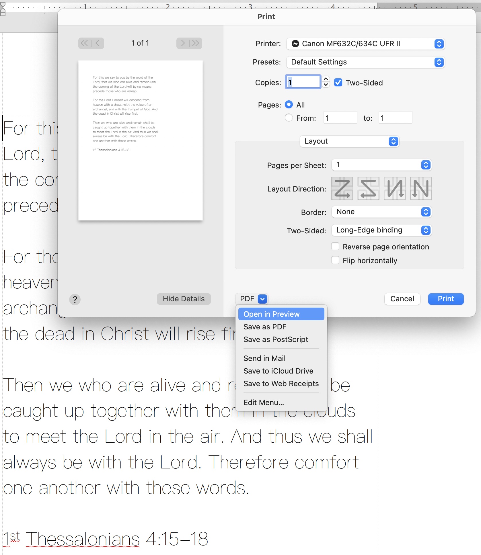 This morning I attempted to print 1st Thess 4 15-18 with TextMaker 2021. (See attached document)