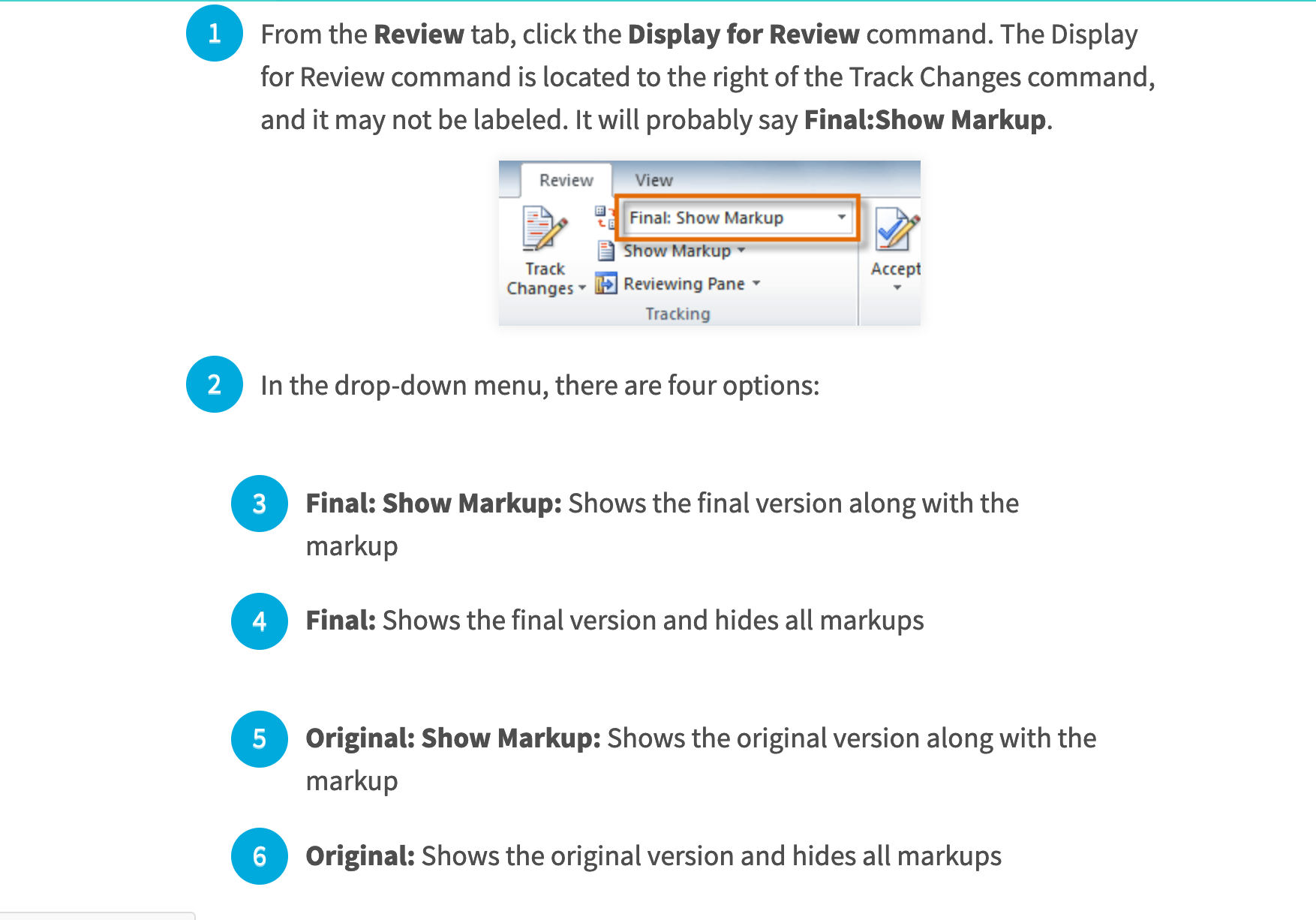 Track changes: show markup menu