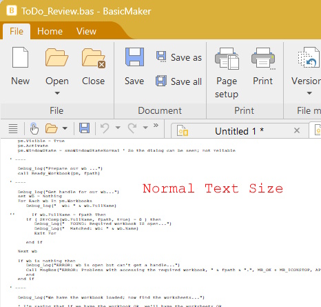 I've just opened BasicMaker to try and deal with some code... and for some reason, the font size in the editor has become minuscule, viz:-