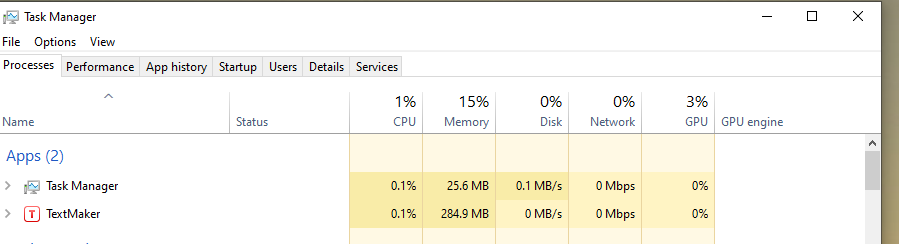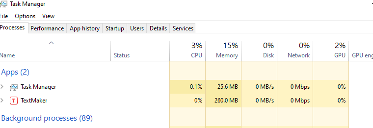 During one of yesterday's instances I opened TaskManager and took a shot before I killed off TextMaker Then I restarted and reloaded document