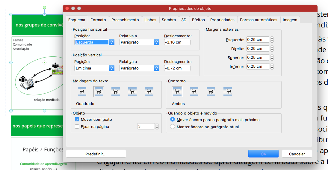I had some annoying problems when introducing images in the left margem of a text. I used the properties interface (see print-screen attached) to adjust the placing referring to the paragraph as well as the hight of the images.