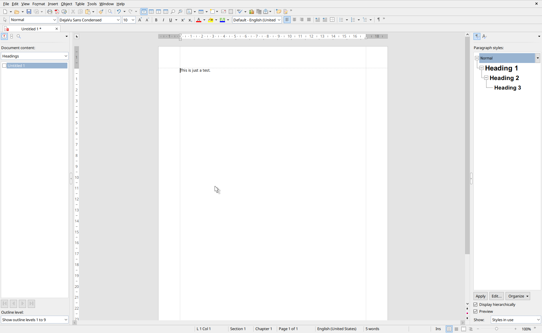 2. Enter "This is just a test" and position the text cursor at the beginning of this sentence afterwards - The result is shown in screenshot 1.
