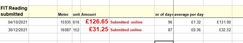 I have solar panels and get a feed-in tariff from the gas company. I just want to be able to estimate to a closer level how much will be paid to me after the readings are taken. Reading are done weekly but payment every 90 days.