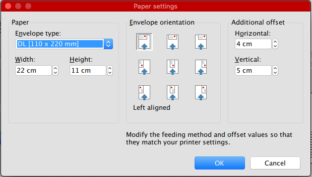 I am using TextMaker Professional 2021 (rev S1014.0529) 64bit on a Mac running OS Catalina 10.15.4. I have all my settings correct in TextMaker, but I cannot print envelopes with the correct orientation. Can anyone give me some hints or tips to correct this? Thanks!
