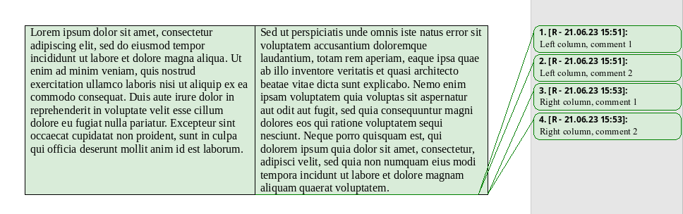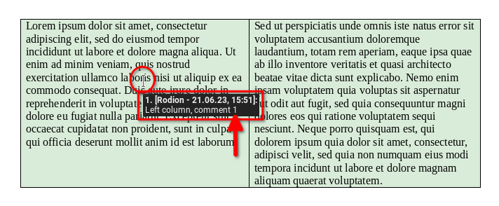 That's how exactly the same composition of table, text and comments look in the TextMaker: