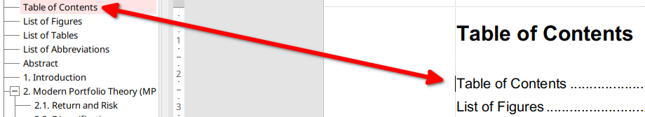 When I format the words 'Table of Contents' as a heading, it will then show in the document structure, as per the left section of the attached image, where the left side of the red arrow is pointing. I do want it to show in the structure. That makes it a clickable link to quickly jump to it.