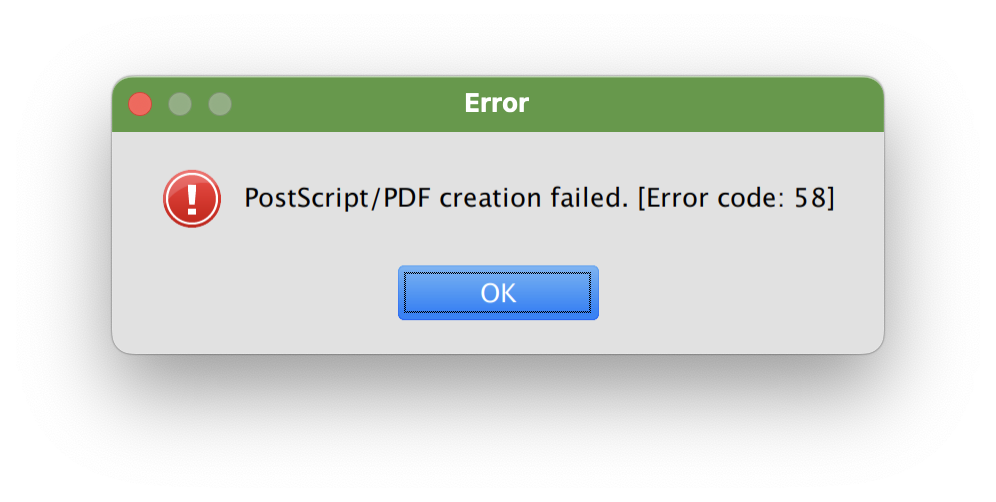 I am unable to open a PDF when the Blair font is used. Attached are the error messages I get when I try to export to PDF. I get Error code 58