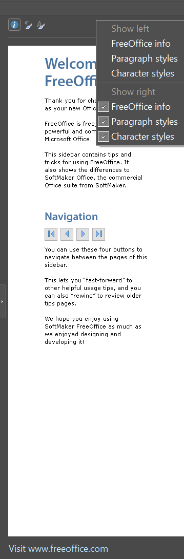Re: How to turn off the "welcome to freeoffice" tab in the sidebar?
