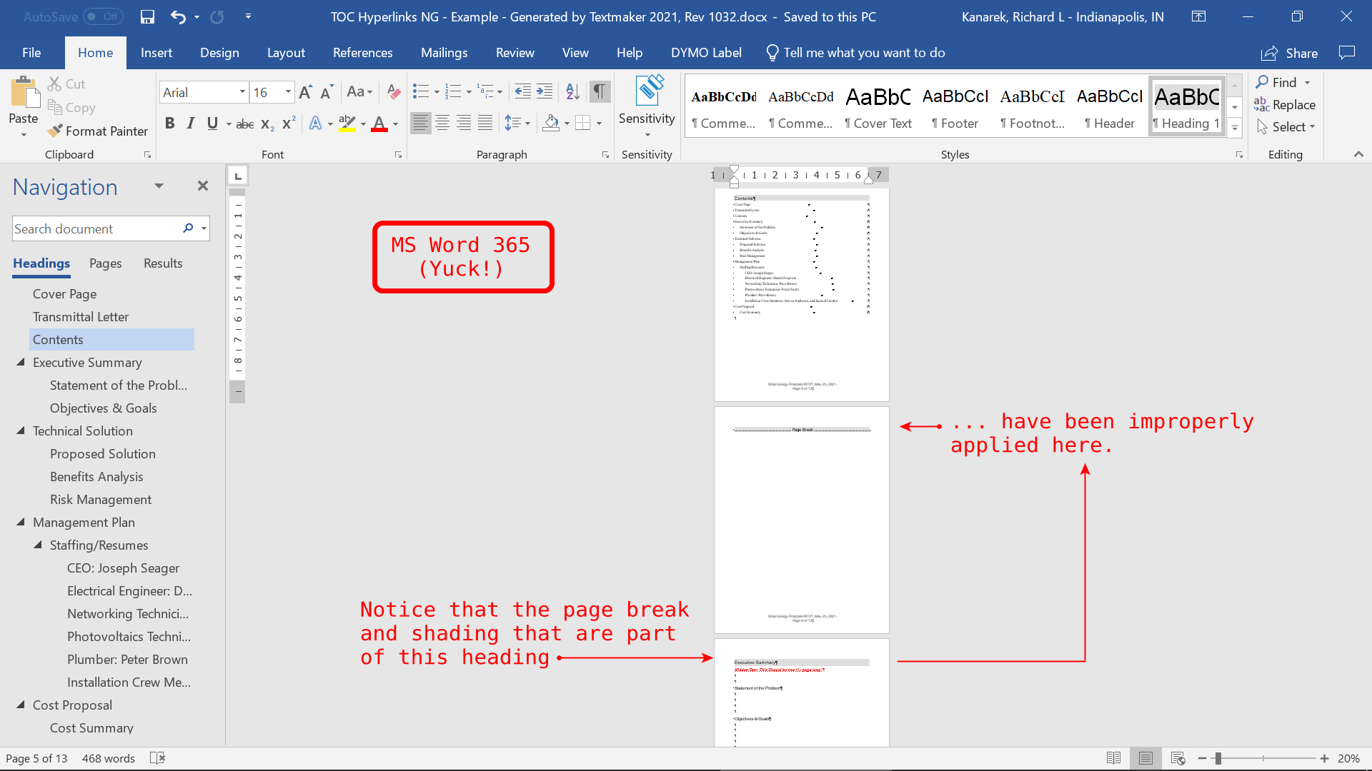 The same document, exported (with compatibility settings enabled) to .DOCX file format, viewed in Word 365: